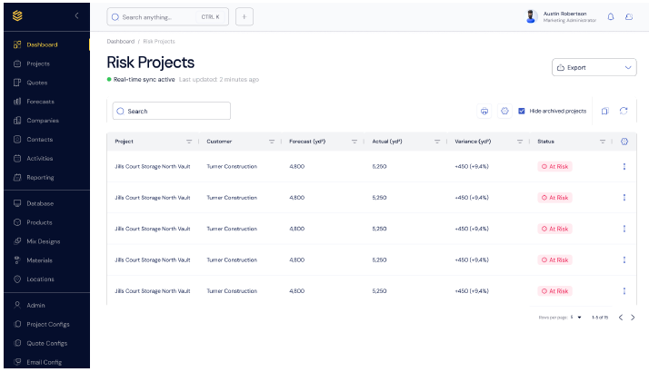 A purpose-built CRM allows producers to set minimum margin thresholds by mix, plant, or customer type. For example, a producer might set a $5-per-ton margin floor on a high-volume mix at Plant A. If a rep quotes below that, the CRM automatically flags it for approval, ensuring that the deal is reviewed before it gets sent out.